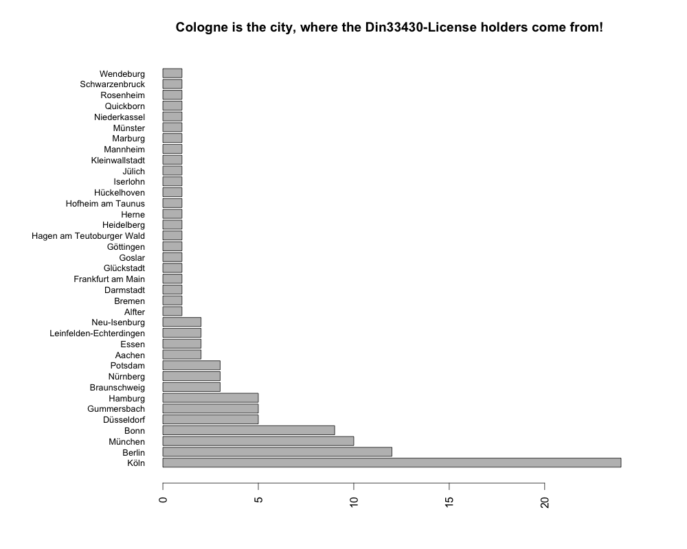 title("Cologne is the city, where the Din33430-License holders come from!")
