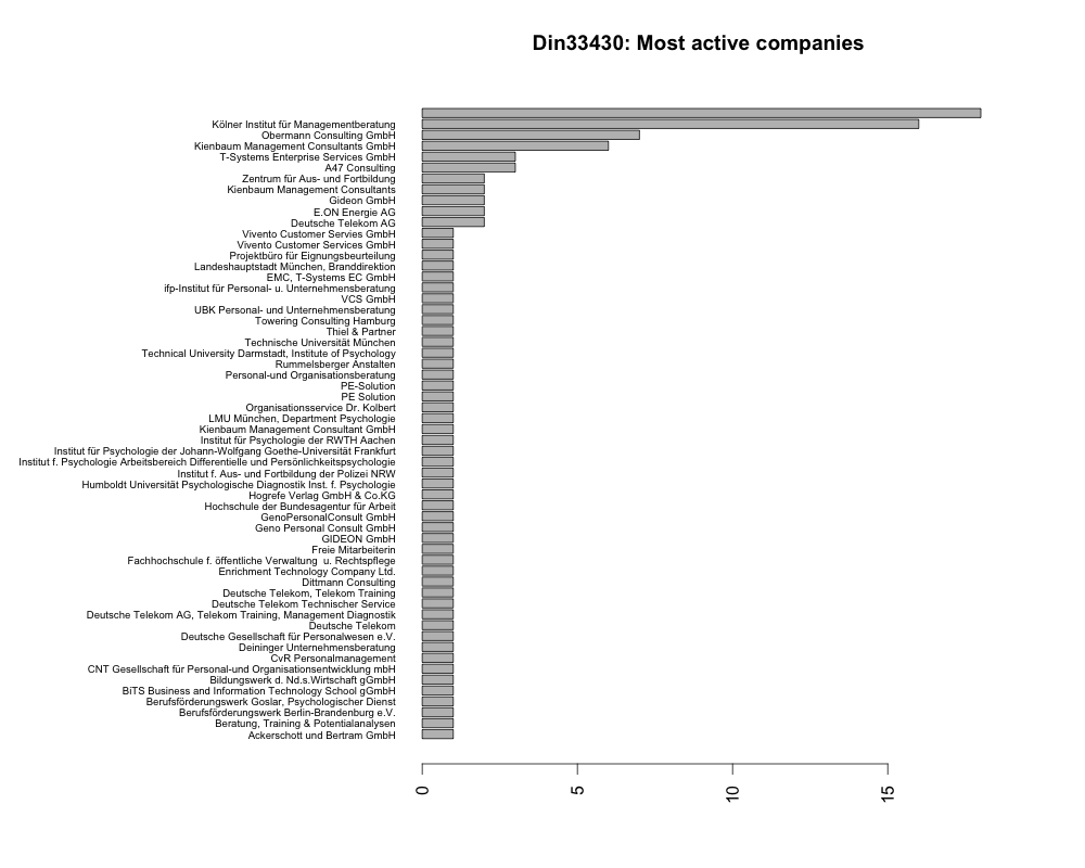 Finally, we look more to the companies that license their employees. The most active company is the "Cologne Institute for Management Consulting". However, companies do appear several times because of spelling mistakes. Look yourself ..